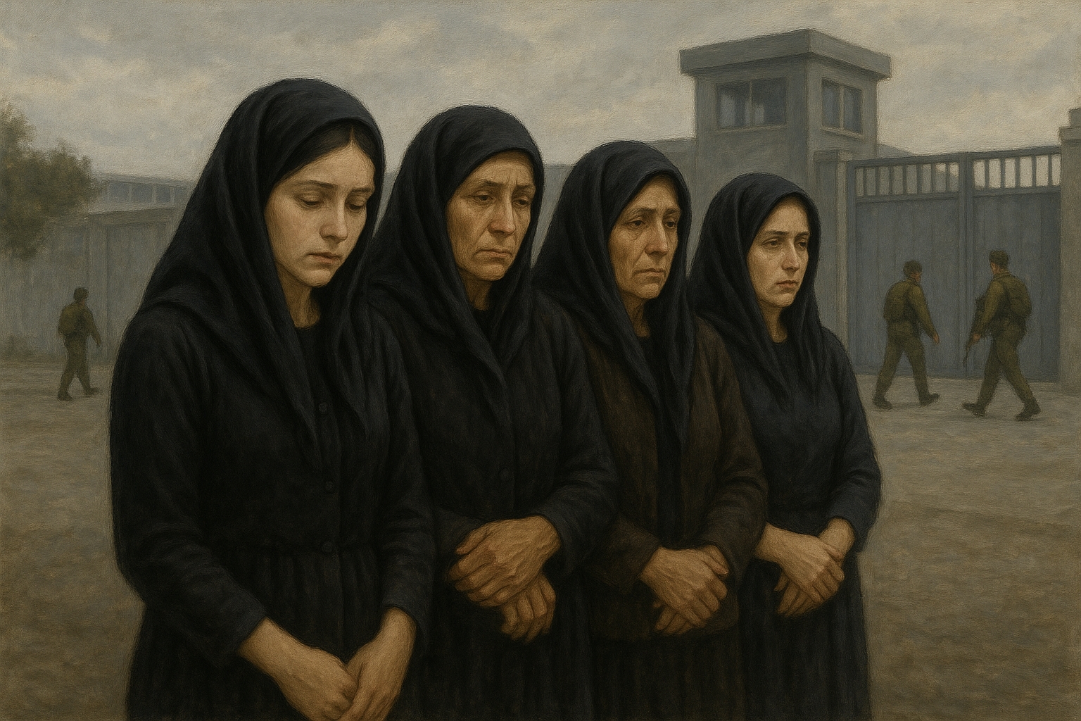 Кожен день біля воріт військової частини, десь осторонь від КПП, ледь помітно смиренно стоять сумні жінки у чорних хустинках. Це і літні жінки і молоді дівчата.