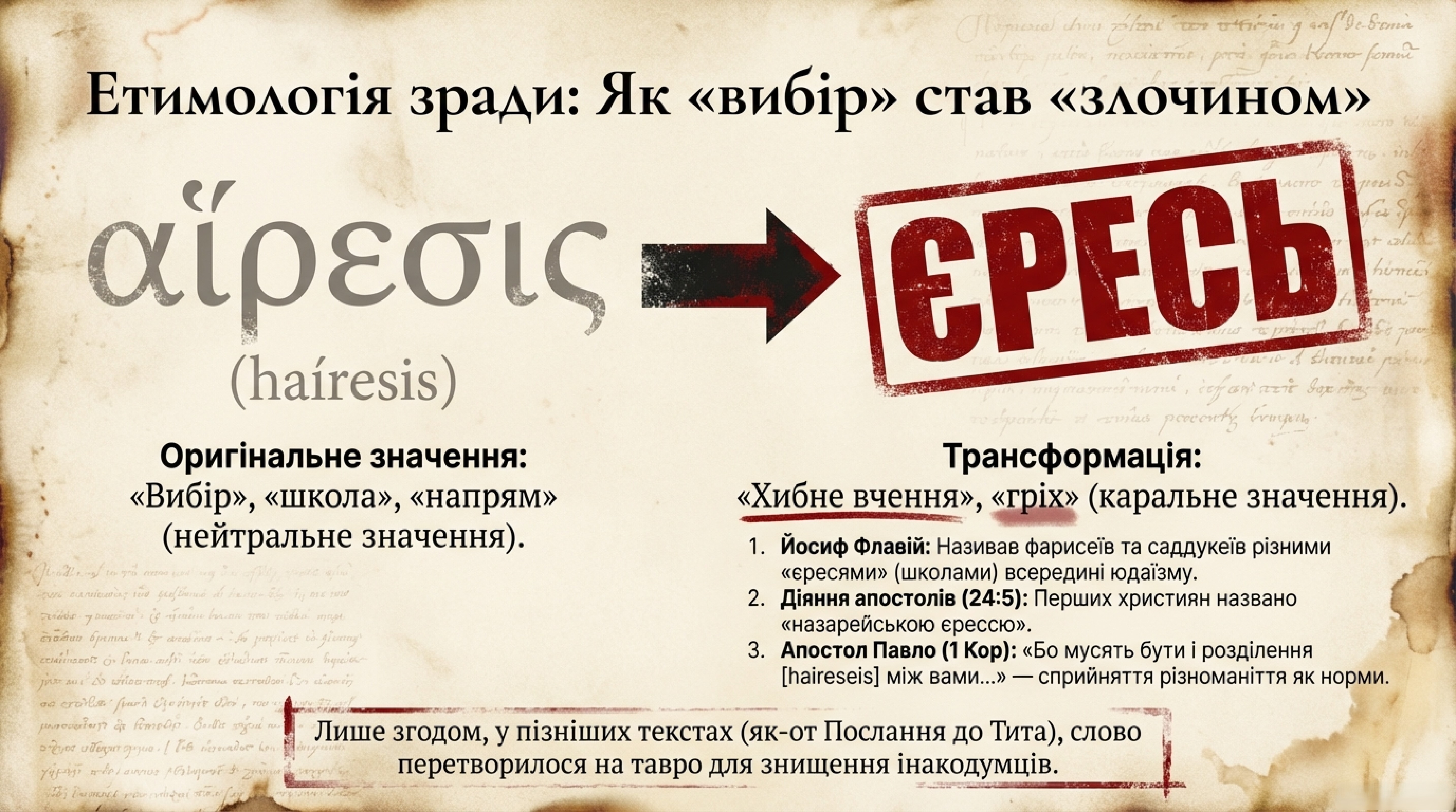 Факт № 2: «Єресь» початково означала не «хибне віросповідання», а «вибір» або «школу»