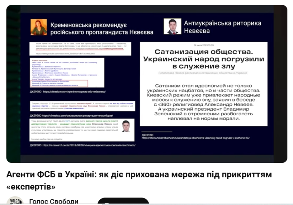 Кременовська неодноразово рекомендувала українській аудиторії слухати рашистського пропагандиста #Невеєва як експерта. Що говорить #Невеєв про українців? Що “український народ занурився у служіння злу. Сатанізм став ідеологією не тільки українських нацбатів, але й частини суспільства. Київський режим вже залучає народні маси до служіння злу.” - ось що каже пропагандист Невеєв, а Кременовська його просуває у нашому інфо просторі.