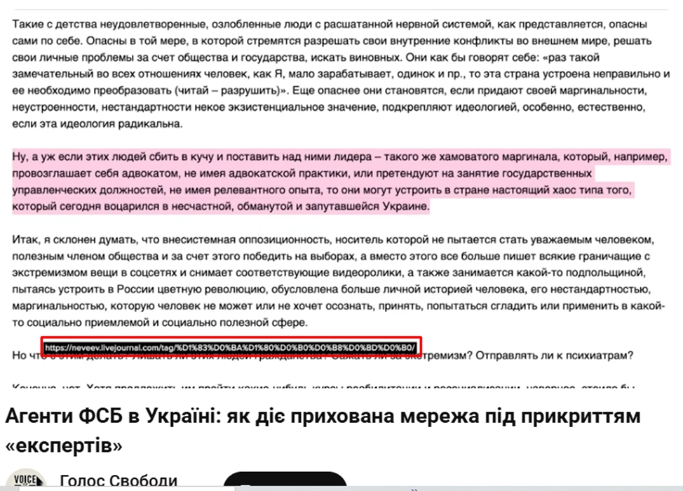 А ось і цитата з офіційної інфо: “Отже, через ресурси, створені та підтримувані Кременовською і Святогором, навмисно поширюється безліч антиукраїнських меседжів, дискредитуються українські державні органи та завдається шкода безпеці України.