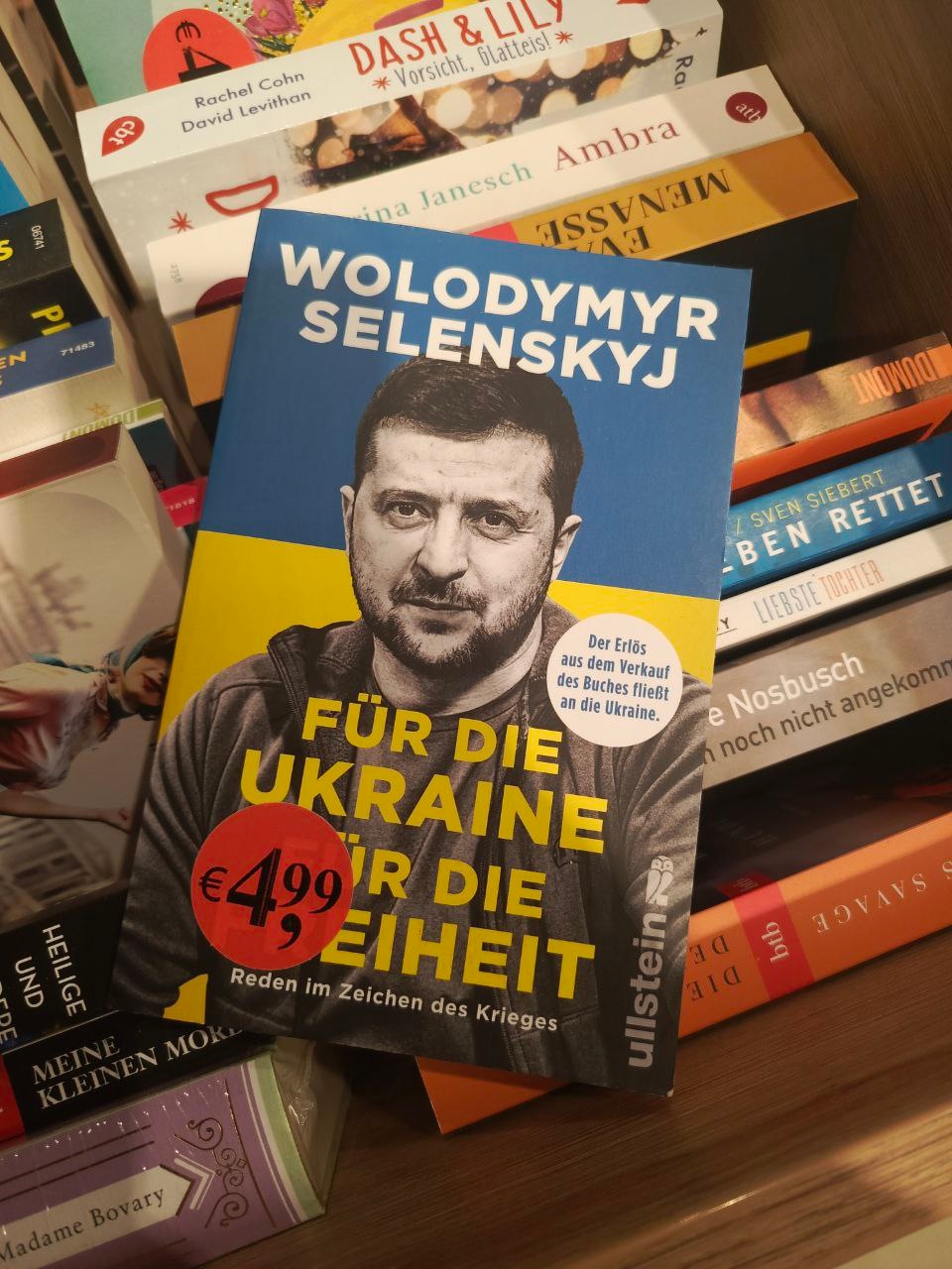 Напевно, найдивніше було бачити політичну частину нашого життя. Борди з обличчям Зеленського, книги та журнали аналітиків про війну. Але прямо артефакт – це книга витяг з інтерв’ю Зеленського 2022 року. Не знаю… Це просто було дивно спостерігати.
