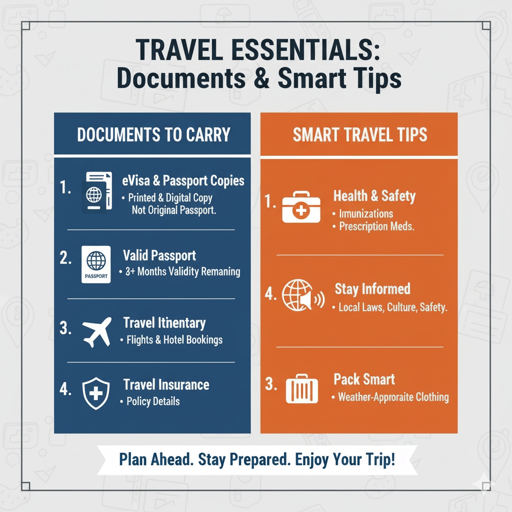 Carry Additional Copies: Carry printed copies of eVisa and passport but not the original.