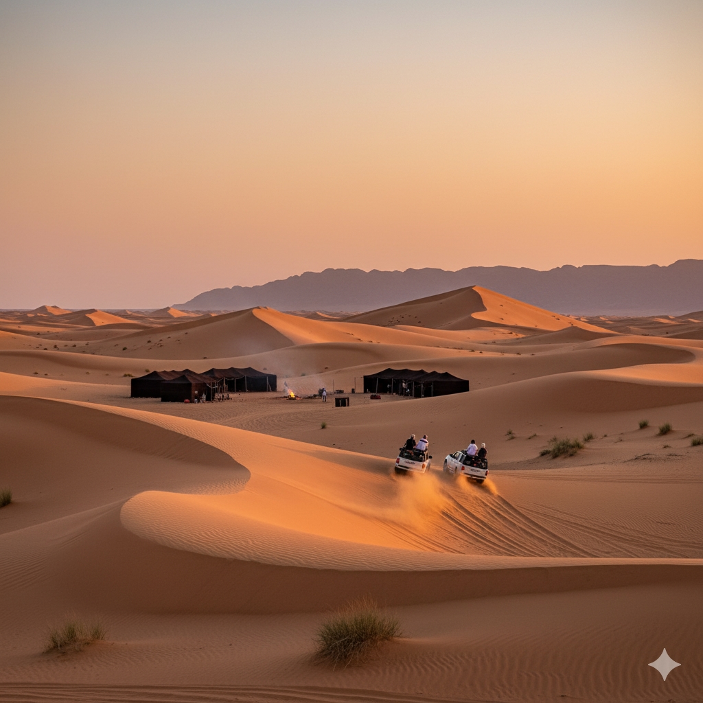 Camel trekking and desert adventure.
