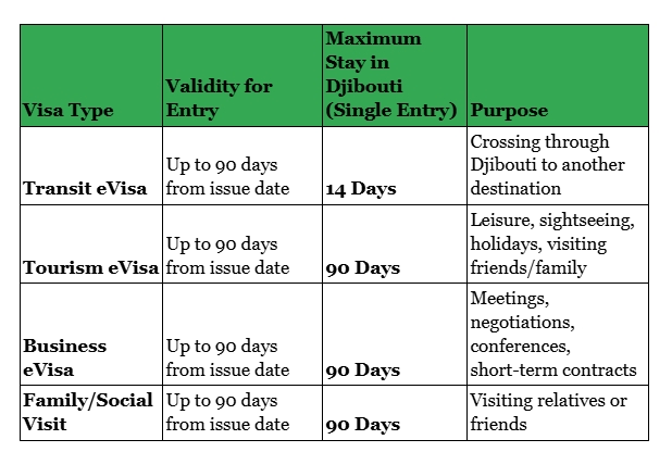 What are the Different Djibouti eVisa Types and Allowed Stays?