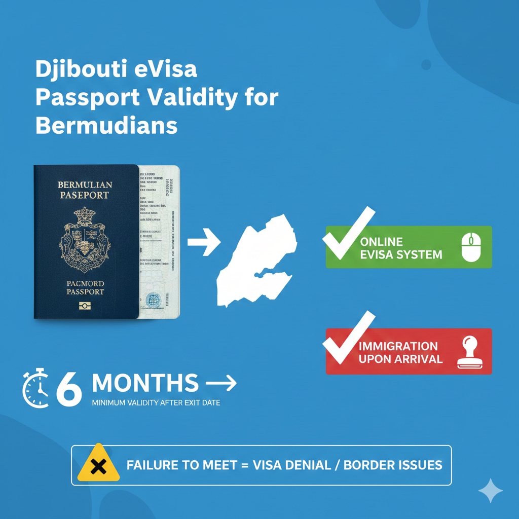 Valid Passport: Your Bermudian passport must be valid for at least six months beyond your intended departure date from Djibouti. You will need a clear, scanned digital copy of the bio-data page.