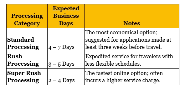 The standard processing time is generally a few business days, but you often have options depending on your travel urgency.
