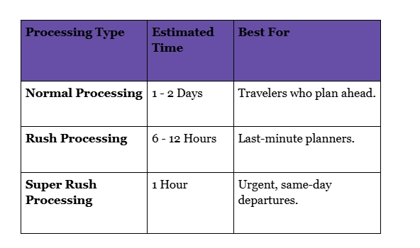 Expedited Fee: An optional charge for travelers who need their documents processed in a matter of hours.