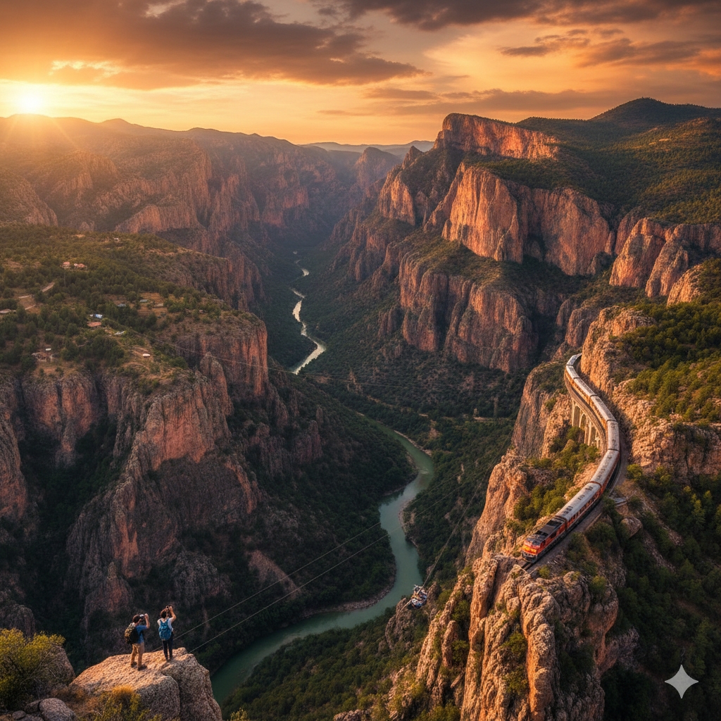 Offers scenic train rides through dramatic landscapes, providing views of cliffs, rivers, and forests.