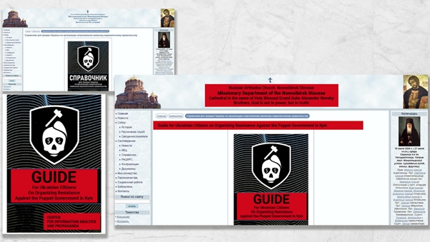 Після викладу фактів про розгалужену агентурну мережу РАЦИРС в Україні, завершимо ще одним прикладом інструкцій РАЦИРС щодо саботажу в Україні. Ці інструкції щодо саботажу опубліковані на сайтах єпархій, очолюваних священиками рпц (МП), які є членами РАЦИРС та ведуть інформаційну війну проти українського народу. Перший такий приклад інструкцій ми знайшли на сайті Новосибірської єпархії руцької православної церкви, настоятелем якої є згаданий раніше віце-президент РАЦИРС протоієрей Олександр #Новопашин . Ці інструкції знаходяться на вкладці «Бібліотека» сайту, у розділі «Довідкова література» 35, 36. Після подальшого розслідування ми виявили, що аналогічні інструкції були опубліковані на інших сайтах єпархій руцької православної церкви.