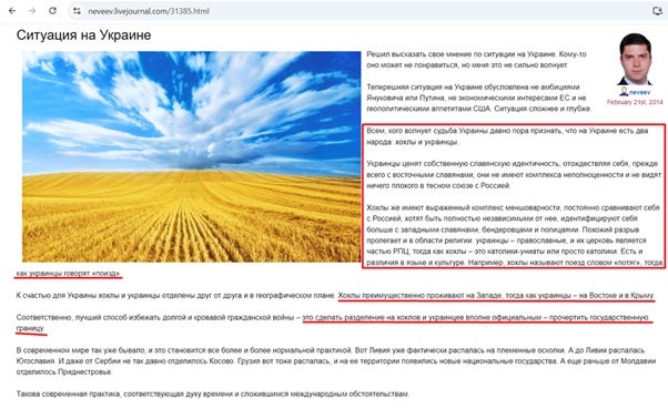 А ось доказ тому, що ще у 2014 р. після анексії Криму Невеєв виказував відверто антиукраїнські погляди, явно з наративами фсбешної РАЦИРС.