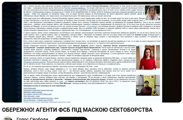 Тож це репост статті з сайту Креминовської про Невеєва та про Кременовську, яких українці начебто ображають і не хочуть їх сектоборчинської діяльності. Цей репост зробив на свій офіціальний сайт віце-президент РАЦИРС у рашці Новопашин ще в 2019 році. Чувак з Новосибірську репостить собі статтю українського не дуже відомого сайту “Вільне слово”. Задумайтесь, віце-президент РАЦИРС структури, яка контролює фсб, цитує невідомий якийсь український сайт “Вільне слово”. Вам ще незрозуміло?