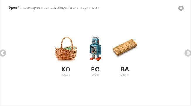 Вже після перших уроків дитина може прочитати свої перші склади та слова. Це надихає продовжувати!