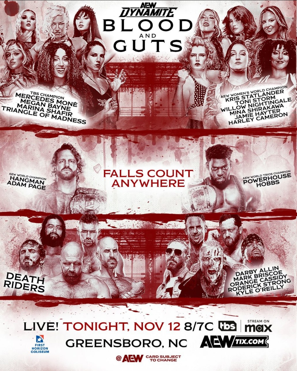 • The Conglomeration (Орандж Кессіді, Марк Бріско та Кайл О'Райлі), Дарбі Аллін та Родерік Стронг перемогли Death Riders (Джон Мокслі, ПАК, Клаудіо Кастаньолі, Деніел Гарсія та Вілер Юта) в чоловічому Blood and Guts Match.