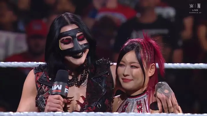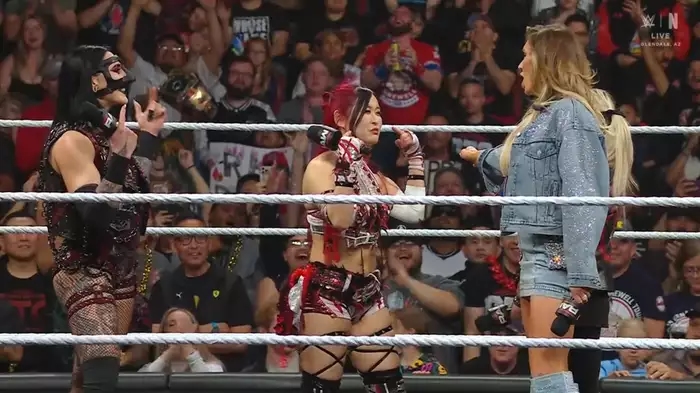Тим часом на арені з’являється ІЙО Скай із перемотаним плечем, а трохи згодом і Рія Ріплі. Обидві жінки отримують оглушливу реакцію публіки. Японка лагідно гладить партнерку по обличчю, коли та сидить на апроні рингу.