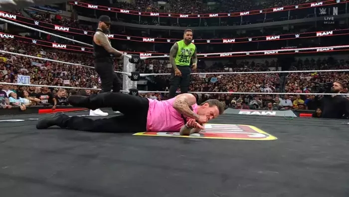 Роман окидає поглядом залу й звертається до Далласа, наказуючи їм визнати його. Але перш ніж він встигає продовжити, лунає музика Бронсона Ріда. Разом із Полом Хейманом він виходить на рампу.