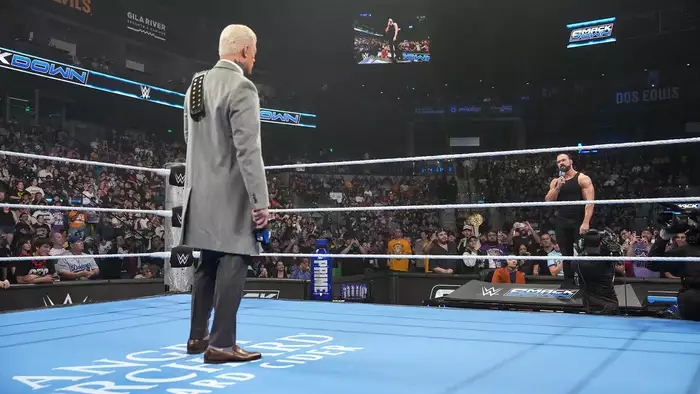 Тепер Коді виходить уже на ринг. Він запропонував поговорити про Дрю Макінтайра. Коді нагадав, як ударив Макінтайра чемпіонським титулом, і замислився, чи варто йому за це вибачитися. У цей момент у натовпі з’явився Дрю Макінтайр. Він заявив, що не потребує вибачень від Коді, і, спускаючись до рингу, звинуватив фанатів у лицемірстві - адже вони освистують його, але підтримують Коді, тим самим стаючи співучасниками його злочинів.
