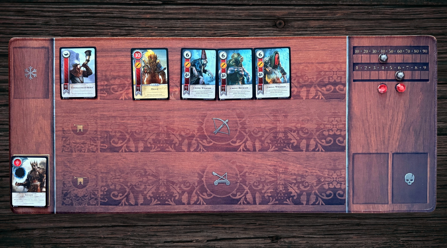 Остерігайтеся «Морозу». Оскільки багато карт Чудовиськ грають у рукопашному ряду, поруч із полем противника, ви вкладатимете багато карт в один ряд. Якщо опонент розігрує «Мороз», створюючи погану погоду для всіх Бойових карт у цьому ряду, сила всіх карт у ряду знижується до 1 очка Сили. Ви можете протидіяти цьому, розігравши Ясну погоду, щоб скасувати «Мороз», або примусити опонента розіграти його завчасно, до того як ви викладете всі карти в рукопашному ряду.