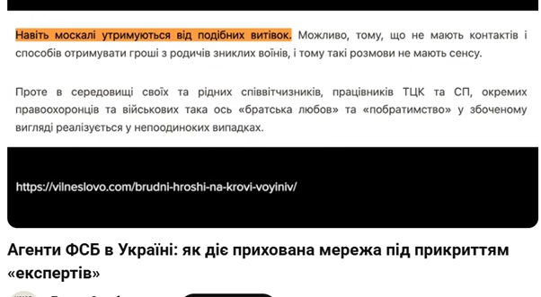 Самі подивіться на її статті на сайті #ВільнеСлово (портал Говори). Розберемо ключові цитати зі статті “Брудні гроші на крові воїнів”.