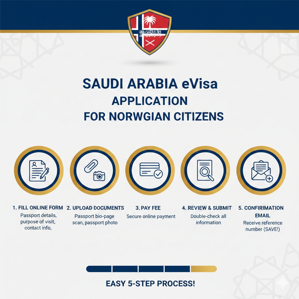 Applying for a Saudi Arabia eVisa as a Norwegian is straightforward. Here's how you can get started: