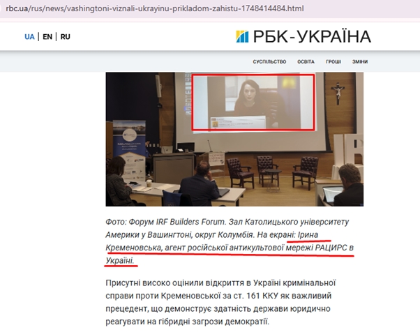 Слід знати, що одним із прикладів діяльності РАЦИРС в Україні є Центр економіко-правових досліджень (ЦЕПД), який був заснований широко відомими догхантерами Іриною Кременовською та Олексієм Святогором у 2017 році. Цей центр активно поширює дезінформацію, підриваючи демократичні процеси в Україні. Через ресурси, такі як «Вільне слово», ЦЕПД публікує матеріали, що дискредитують релігійні групи з Європи та США, та активно підтримує проросійські наративи, що сприяють подальшій ескалації напруженості в Україні.