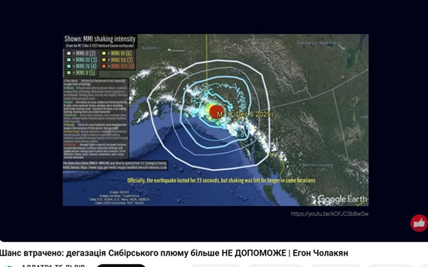У 2025 (дві тисячі двадцять п’ятому) році Земля вступила в нову фазу сейсмічної активності. Ви й самі це спостерігаєте: внаслідок впливу плюму за один тиждень сталися одразу два потужні землетруси магнітудою понад 7,0 (семи). Спочатку — на кордоні Аляски та Юкону — магнітудою 7,0 (сім), а всього через два дні — магнітудою 7,6 (сім цілих шість десятих) — біля узбережжя Японії. Це не випадковий збіг. Це ознаки глибинних процесів, спричинених тиском Сибірського плюму на земну кору.