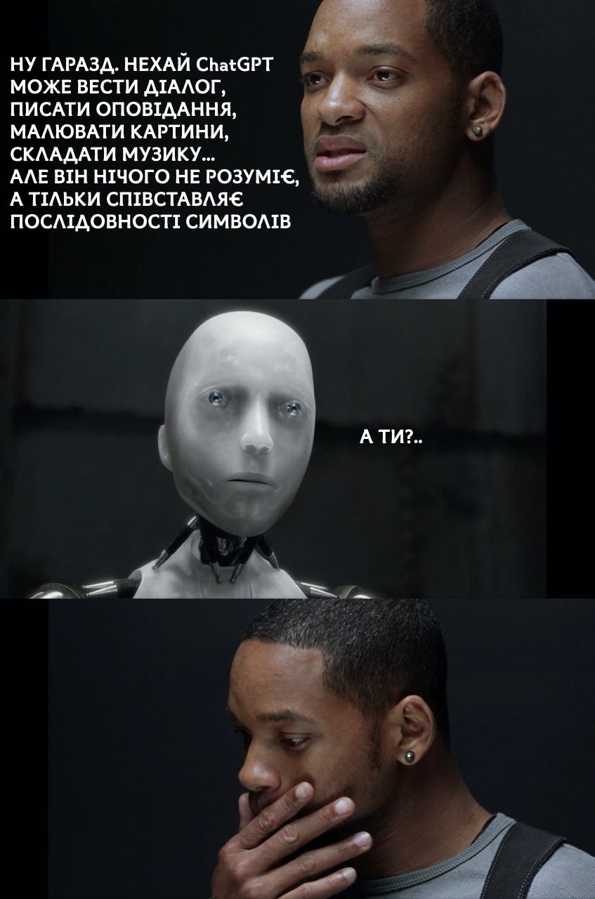 А чого воно таке тупеньке і галюцинує? Ну от уявіть, що ви з народження перебуваєте в темряві й тиші, не можете рухатись, мацати, нічого. Все, що ви маєте — це безліч текстів. Ви навчились в них орієнтуватися, але ви насправді не знаєте, чим одні тексти особливіші за інші. Або от інший погляд: пам’ятаєте перші генерації картинок та відео, з усім оцим психоделічним перетіканням образів? Нічого не нагадує? Авжеж, сновидіння. ШІ не галюцінує, він спить і бачить сни, ну й переповідає нам те, що бачить. Це все скоро зміниться, коли роботи з ШІ почнуть активно й самостійно досліджувати реальність (вже починають). Чекаємо.