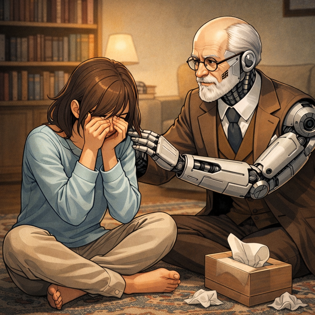 Наскільки ШІ здатні встановлювати емоційний зв’язок і терапевтичний альянс? Насправді дуже добре, і справа тут не в ШІ. Люди дуже легко антропоморфізують навіть роботи-пилососи і автомобілі, що вже казати про сутність, яка підтримує чуйний діалог. (Знов пригадаймо чат-боти Replika та Character.ai, в яких користувачі по-справжньому закохувались). І люди схильні довіряти та відкриватись більше сутності, яка точно не розповість нічого стороннім. ШІ — це ідеальний конфідент, адже він нікого не судить і нічого не пам’ятає після розмови (якщо ви цього забажаєте). Це створює безпечний простір для дослідження найглибших і найсором’язливіших аспектів вашої особистості.