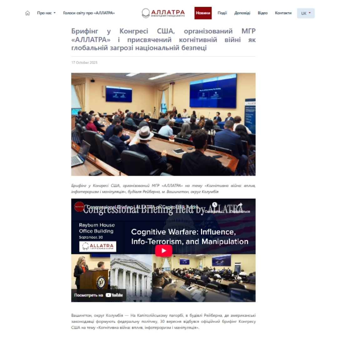 Скрин: Джерело: https://allatra.org/uk/press-release/allatra-congressional-briefing-cognitive-warfare