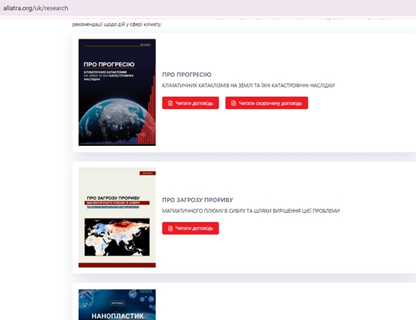 Міжнародний громадський рух «АЛЛАТРА» протягом багатьох років вивчав кліматичні та геодинамічні зміни Землі і науково встановив, що в даний час відбувається активізація Сибірського плюму, розташованого на території rосії. Науково обґрунтовано, що його повна активізація може призвести до катастрофічних наслідків для всього світу.