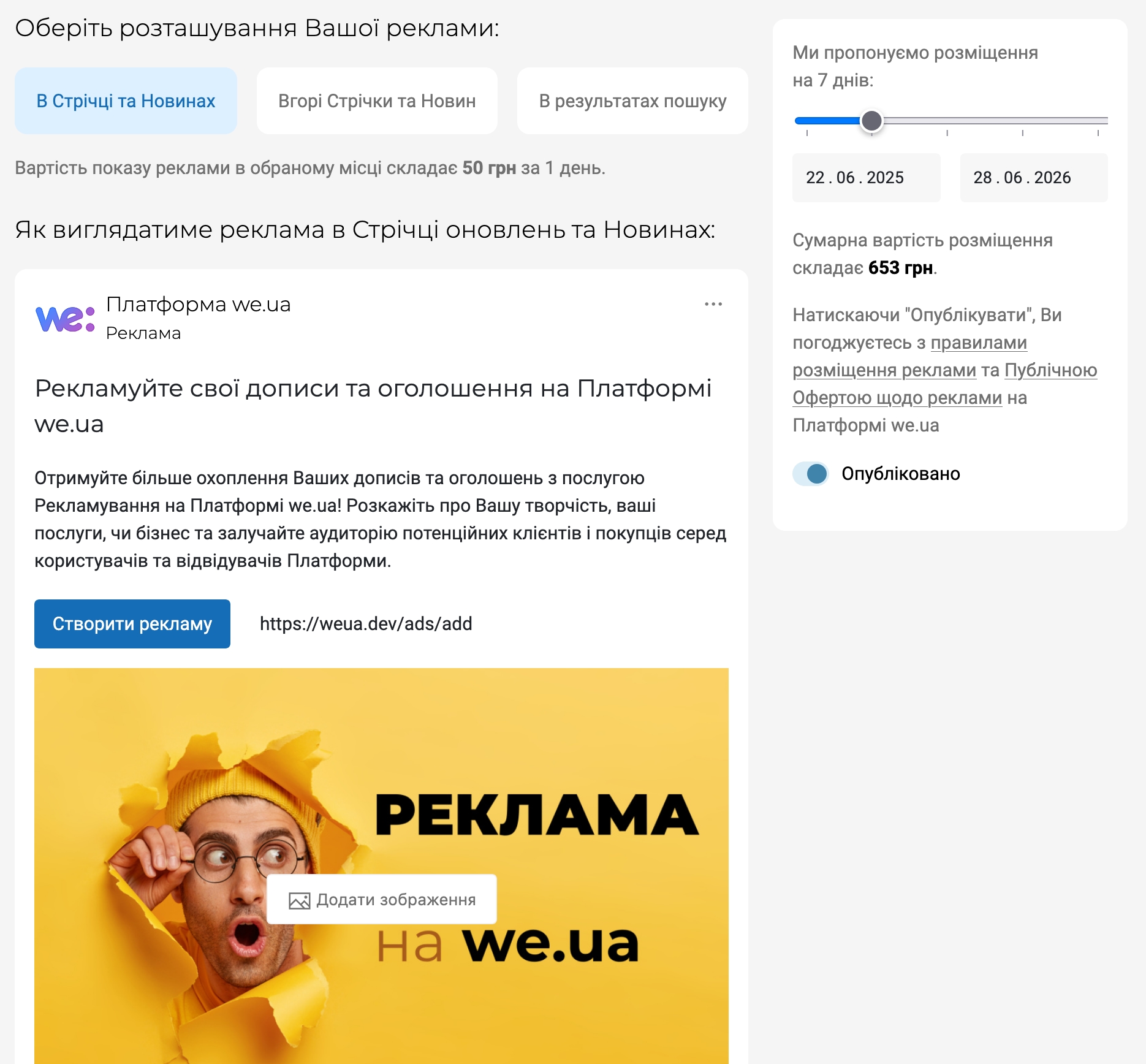 Для користувачів, які прагнуть продавати власні використані речі, ми створили окрему Дошку оголошень на WE.UA, щоб ці речі краще продавались та користувачі мали більше позитивного досвіду.
