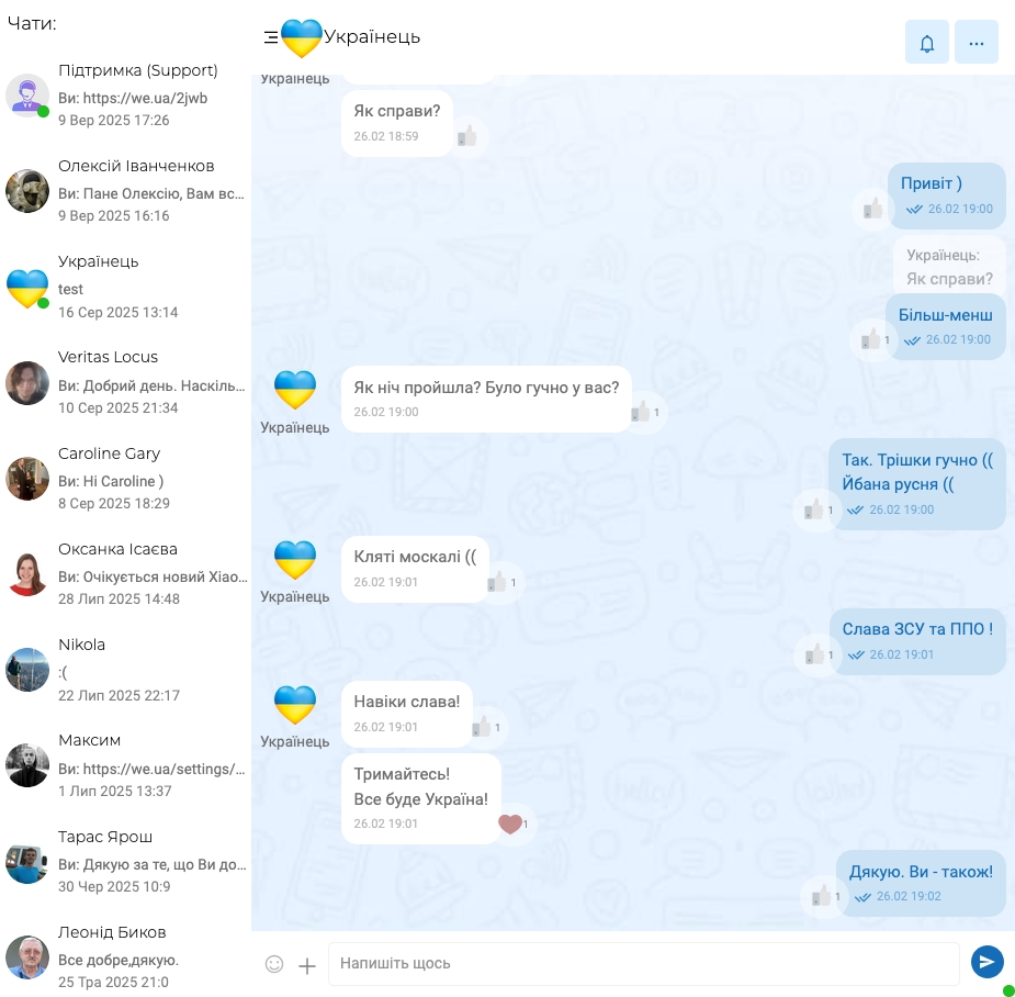 Окрім публічних повідомлень, користувачі нашої Платформи можуть обмінюватись миттєвими повідомленнями як на сайті, так і в мобільному додатку.