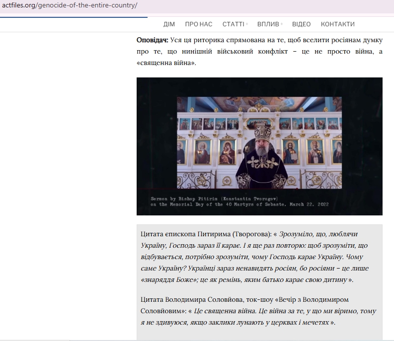 Вся ця риторика спрямована на укорінення у свідомості росіян установки, що поточний військовий конфлікт - це не просто війна, а священна війна.