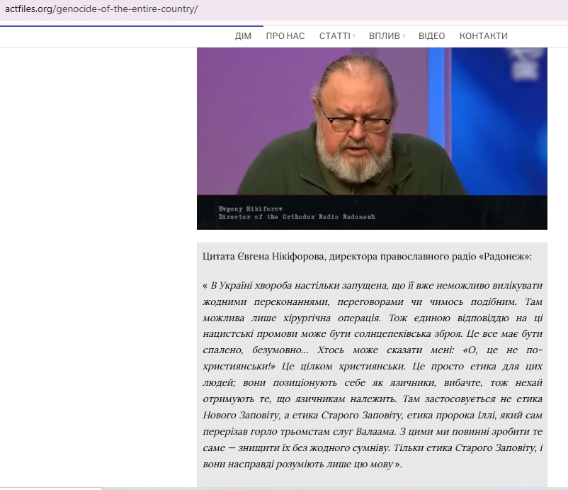 Ось почитайте, що фсбешні агенти РАЦИРС через руську православну церкву промивають мізки людям: “І от зрозуміло, що Господь, люблячи Україну, карає її. І от аби зрозуміти, що відбувається, ще раз повторюю, потрібно зрозуміти, а чому Господь карає Україну? Чому саме Україну? І ось ця ненависть українців до росіян. Адже