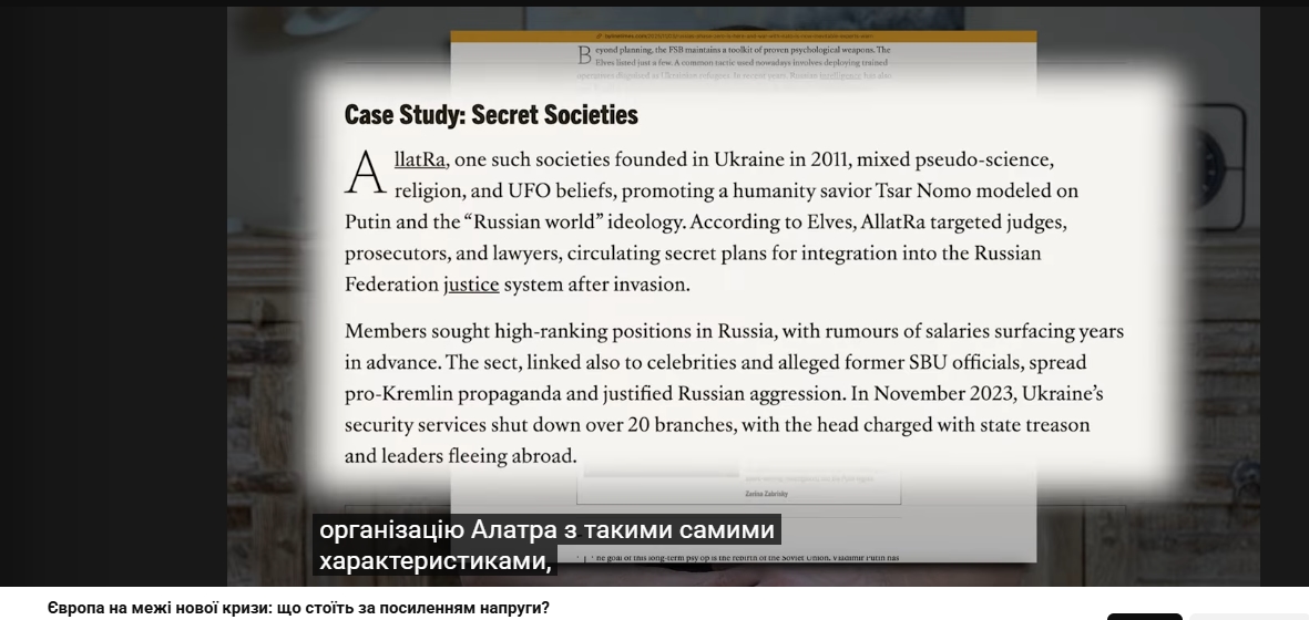 В принципі, автор розкладає по полицям, як працюють кремль, які використовує методи. Ми читаємо та бачимо, що це правда. Це дійсно відбувається в Україні та Європі. Тому наша довіра до нього зростає. І тут, як в попередній статті, бац, знову ця заказуха про “таємничу” організацію АЛЛАТРА. Знову ті самі ярлики: “секта”, номопуйло. Але тут цей вкид дуже короткий, буквально пару речень. І автор знову повертається до геополітики. Ну, до чого тут взагалі це було?