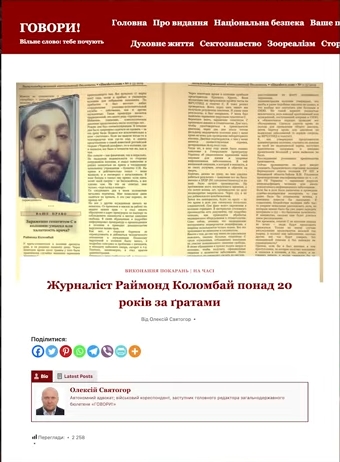 скрин з порталу “Говори”, де Святогор пише, що Коломбай понад 20 років за гратами