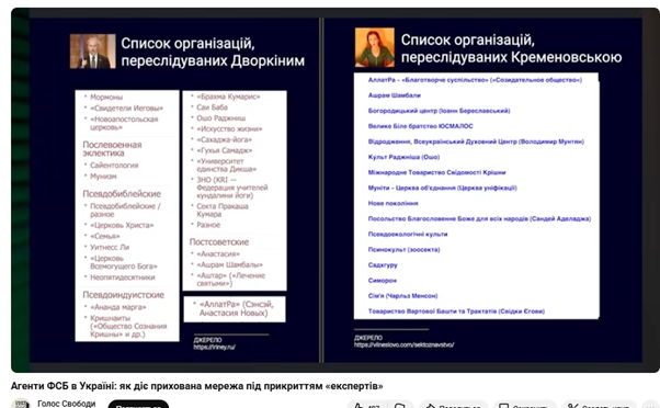 Тому, друзі, нам є за що з вами боротися. За свободу, за наші права. А тепер гляньте на Кременовську та Святогора. Вони прикриваються темою “сект”, але це лише ширма, щоб просунути закони кремля у Верховній Раді. Їхня справжня мета, щоб ми жили, як у рашці під рпц та під фсб, без права на свободу і вибір.