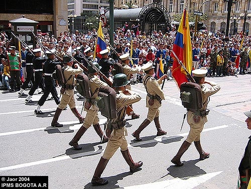 Протягом останніх двох років Другої світової війни невелика кількість шоломів M1 почала надходити до Колумбії в межах допомоги за програмою ленд-лізу зі США. Попри це, німецькі штальхельми залишалися в активному використанні як під час війни, так і в післявоєнний період. З 1948 по 1953 рік країна пережила період, відомий як “La Violencia” (“Насильство”) — епоху політичної нестабільності, повстань, партизанської війни та масштабних вуличних заворушень. Армія Колумбії в ці роки брала участь як у боях проти повстанців у джунглях, так і в операціях із відновлення порядку в містах. У цей час шоломи M35 продовжували використовуватися поряд зі зростаючою кількістю американських M1. На початку холодної війни Вашингтон розглядав Колумбію як стратегічного союзника в регіоні — країна була найближчою до Панами та зони Панамського каналу, що мало величезне геополітичне значення. У 1949 році США передали Колумбії велику партію надлишкових шоломів M1 часів Другої світової війни за символічною ціною. Перехід на новий тип відбувся дуже швидко, і вже до 1951 року M1 став єдиним стандартним бойовим шоломом колумбійської армії. Попри це, невелика кількість німецьких M35, а також деяких старіших моделей — таких як “рогаті” M18 і навіть кілька екземплярів “Пікельхаубе” — залишалася в армійських запасах як частина історичної традиції. Ці шоломи й сьогодні можна побачити під час святкових військових парадів “Los Desfile”, коли підрозділи проходять у строю, демонструючи форму, спорядження та озброєння різних історичних епох. Таким чином Колумбія вшановує свою військову спадщину, і німецькі типи шоломів залишаються помітним символом її минулого.