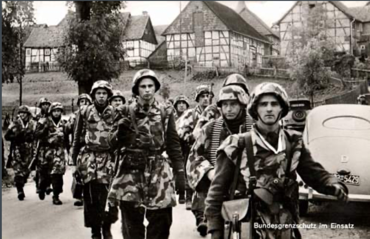 Після створення у 1951 році Bundesgrenzschutz (BGS) — Федеральної прикордонної служби, яка фактично виконувала функції воєнізованої поліції й певною мірою слугувала тимчасовою заміною армії (аналогічно до Kasernierte Volkspolizei у НДР), — традиційний німецький сталевий шолом, відомий ще з часів Другої світової війни, був знову введений на озброєння. Використовувався він майже без змін у формі, близькій до моделей M35/M40, і залишався в службі протягом кількох десятиліть — аж до початку 1990-х років, коли його остаточно замінили сучасні композитні каски нового зразка.