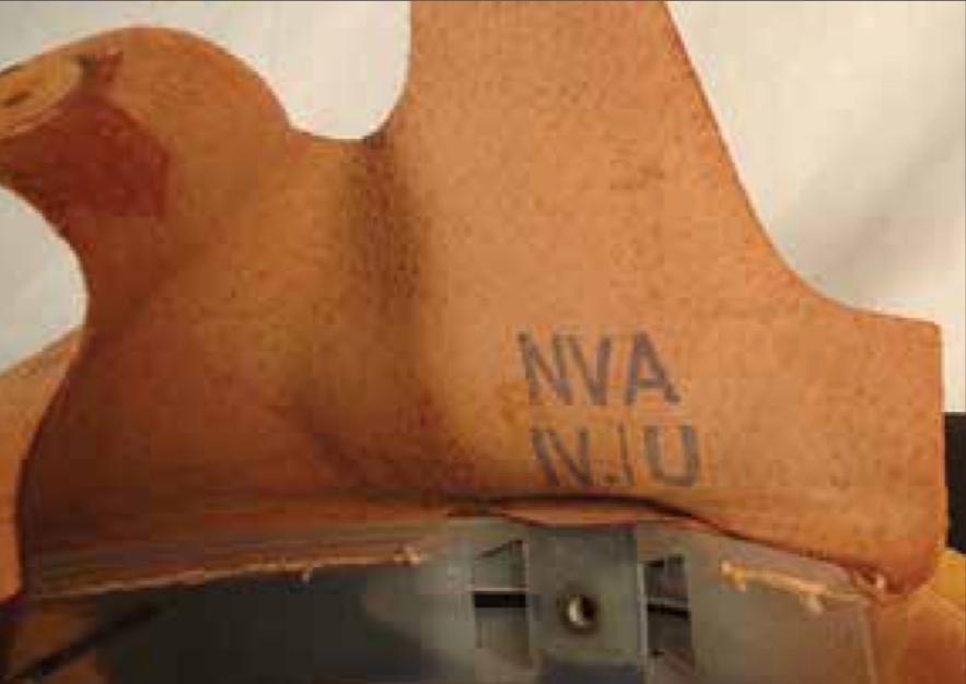 Загальний вигляд корпусу нагадував сталевий М56, однак передня частина мала трохи менший кут нахилу, що створювало характерний асиметричний профіль. Козирок був злегка піднятий догори, а в нижній частині корпусу проходила так звана “спідниця”, яка надавала шолому впізнаваного силуету. Єдиним маркуванням було позначення розміру голови (наприклад, 55, 56, 57 тощо), відлите на внутрішній поверхні з тилу корпусу. Підшоломник кріпився трьома розщепленими заклепками з великими круглими головками. Його шкіряна вставка зберігала форму, подібну до сталевого М56, але пришивалася до картонної смуги, а не приклепувалася до металевої. Y-підтяжки повторювали конструкцію сталевих, проте не мали плоскої шкіряної накладки біля D-подібного кільця. Для пом’якшення посадки використовувалися чотири гумові прокладки, приклепані до смуги підшоломника.