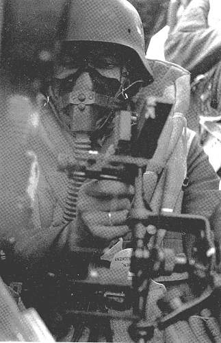 Також зустрічалися шоломи з зображенням кулемета MG08 в колі. Як правило вона розташовувалася з лівого боку та зроблена вручну. Є теорія, що такі шоломи використовували члени кулеметних розрахунків, однак жодних достовірних підтверджень цьому не існує. [14]
