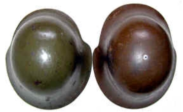 Пофарбована поверхня в один колір(наприклад, зеленим або світло-коричневим) чи з невеликими плямами різних кольорів перевершує одноколірний шолом, хоча він досі дозволяє розпізнати характерну форму та силует.
