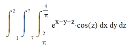 def triple_integral(function, x, lower_limit_x, upper_limit_x, y, lower_limit_y, upper_limit_y, z,
