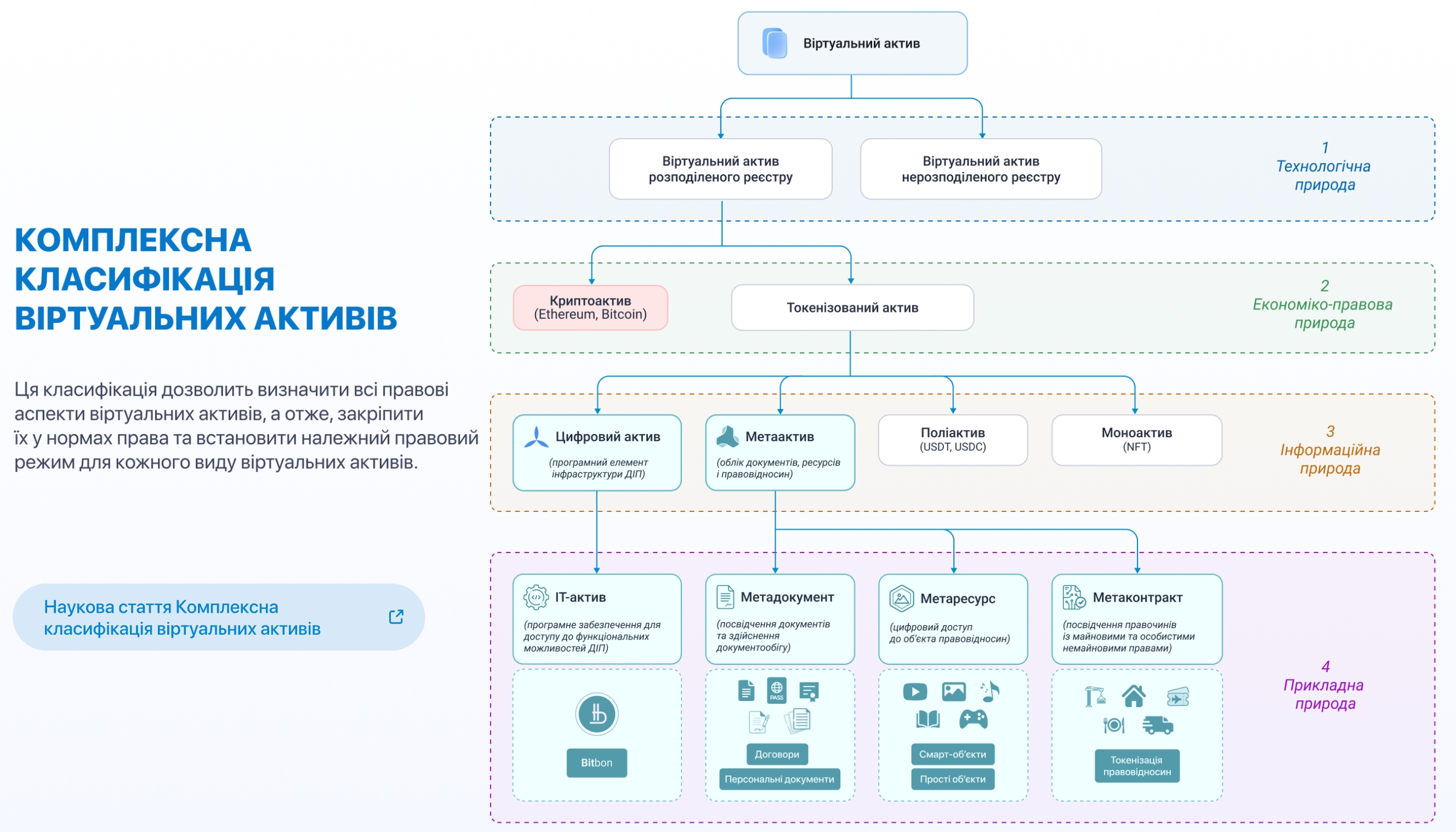 У звязку з тим, що криптоактиви по своїй економіко-правовій природі створюються, як активи без забезпечення і реального підкріплення майном, їх заведено класифікувати як валютна децентралізована цінність. Простими словами криптовалюта - це перші у світі гроші, що не контролюються центральними органами.