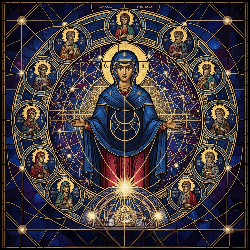 У грецькій лексиці слово синáксис означає сходження, але тут воно звучить як інтелектуальний жест. Зібратися означає не накопичити імена, а вибудувати поле взаємного резонансу. Марія у цьому полі функціонує як носій архетипу прийняття, не емоційного, а онтологічного. Її згода має характер космічної етики, де свобода не конфліктує з покликанням, а входить з ним у консонанс.