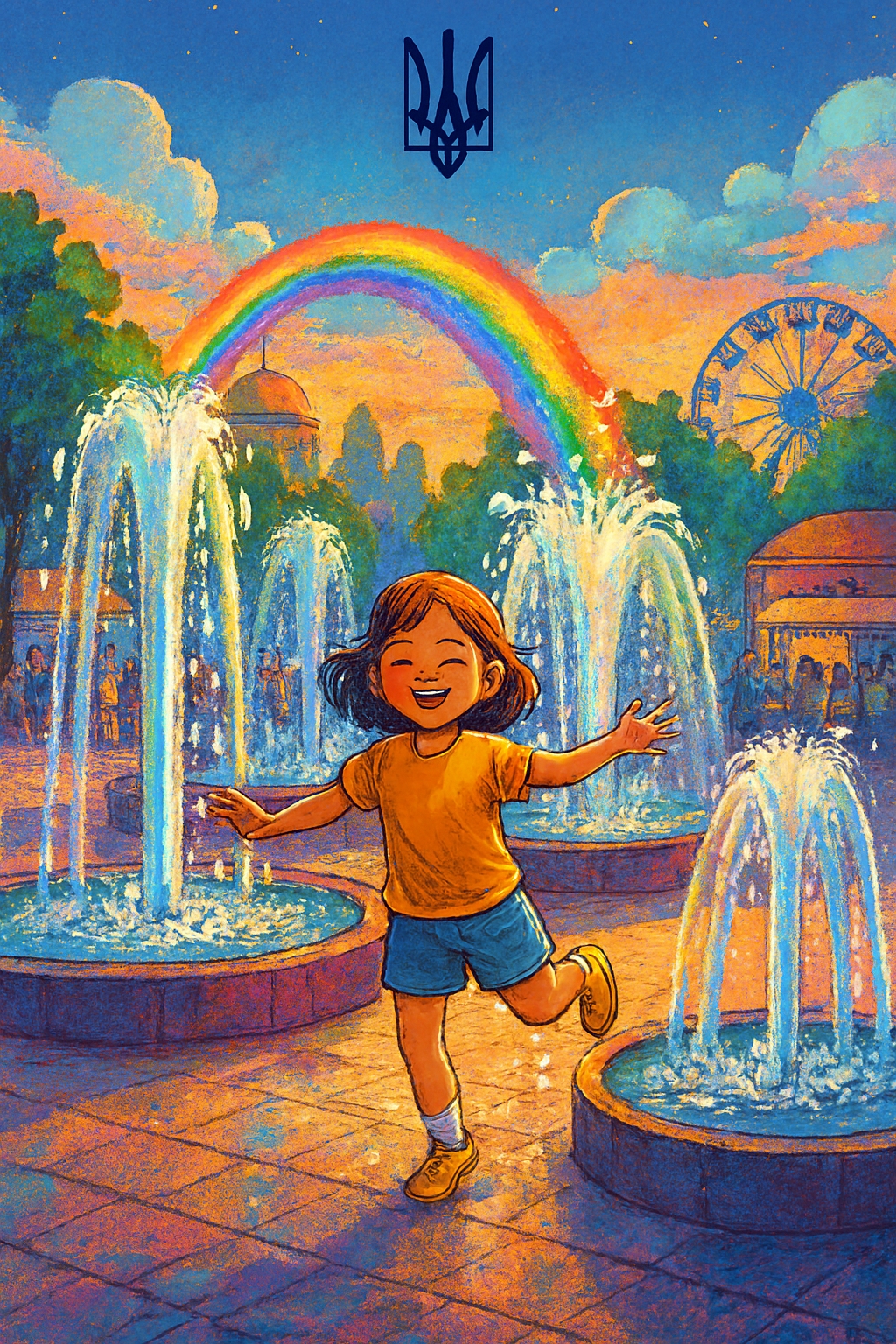 Потім — канатна дорога. Трохи страшно дивитися вниз, але дуже гарно. Блакитне небо, а внизу — височенні дерева. Подорож була захопливою. Багато фонтанів. Вона бігала вздовж них, намагаючись спіймати краплі води, роздивлялася райдугу між струменями.