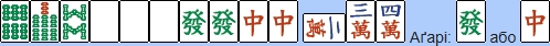 Дайсанґен: у руці є три набори (трійок/четвірок) усіх драконів. Може бути відкрите.
