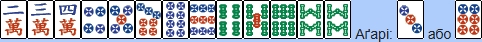 Саншьоку доджюн: три однакові послідовності в трьох мастях. Може бути відкрите (але втратить 1 хан).