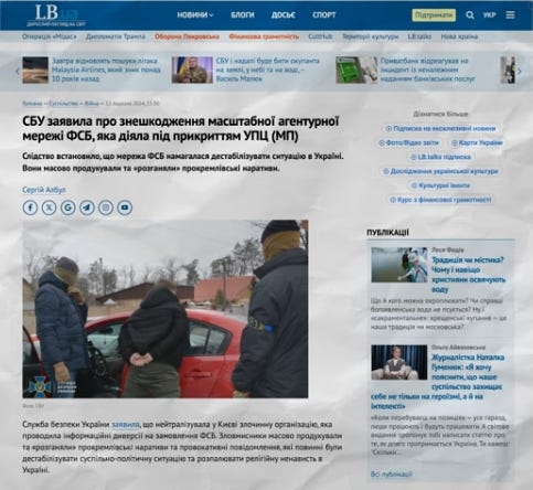 Як пишуть на сайті СБУ: “наразі це одна із найбільших мереж ФСБ, яка діяла в Україні з початку повномасштабного вторгнення. Вона мала чітку ієрархію та розподіл функцій, а також постійний зв’язок із найбільшими ЗМІ рф, які одразу підхоплювали потрібний контент. Підготовлений контент розповсюджували через десятки підконтрольних каналів у Telegram та YouTube, а також на сторінках у Facebook та офіційних сайтах різних іє епархій у УПЦ МП. Одразу після оприлюднення замовних матеріалів їх миттєво підхоплювали центральні