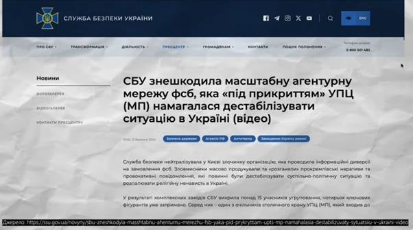 Як повідомляли СБУ та прокуратура, у 2024 році правоохоронці припинили діяльність мережі осіб, причетних до інформаційної діяльності, що містила ознаки розпалювання релігійної ворожнечі та виправдання збройної агресії рф проти України. Після понад 20 обшуків у Івано-Франківській, Хмельницькій, Житомирській областях і в самому Києві, правоохоронці вилучили докази протиправної діяльності та повідомили про підозру 14 учасникам злочинної організації. Кого і за що, залежить від ролі кожного. Але мова йде про державну зраду, співпрацю з ворогом, створення і участь у злочинній організації, розпалювання релігійної ворожнечі, а також виготовлення і поширення матеріалів, які виправдовують або заперечують війну расії проти України.