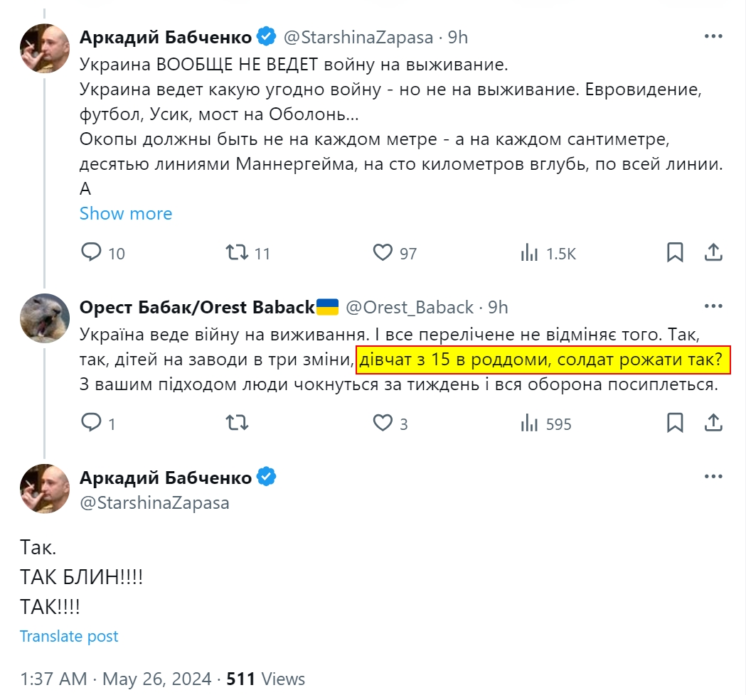 Обурення, яке так роздратувало старшину рашистської армії Аркадія Бабченка, було викликано черговим(!) ідиотично хамським “одкровенням” Віталія Портнікова про те, що війна для бидла; що українці це худоба: